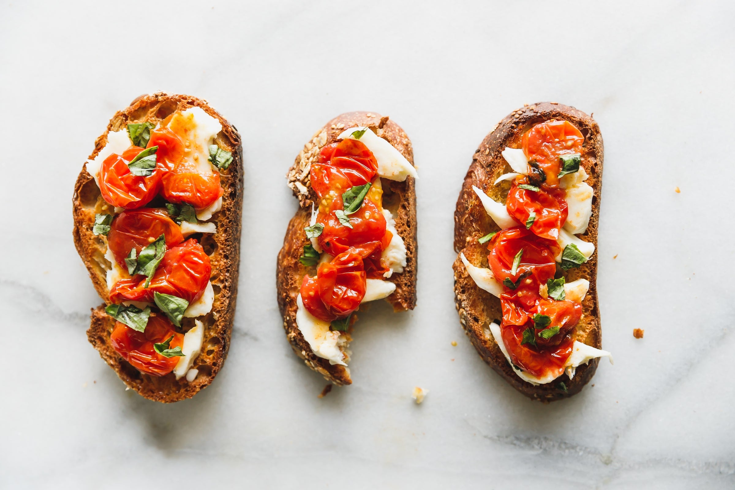 2. Arrange mozzarella on a platter and spoon warm tomato mixture with juices over; sprinkle with sea salt. Serve with olive-oil-toasted bread for soaking up all those extra juices.